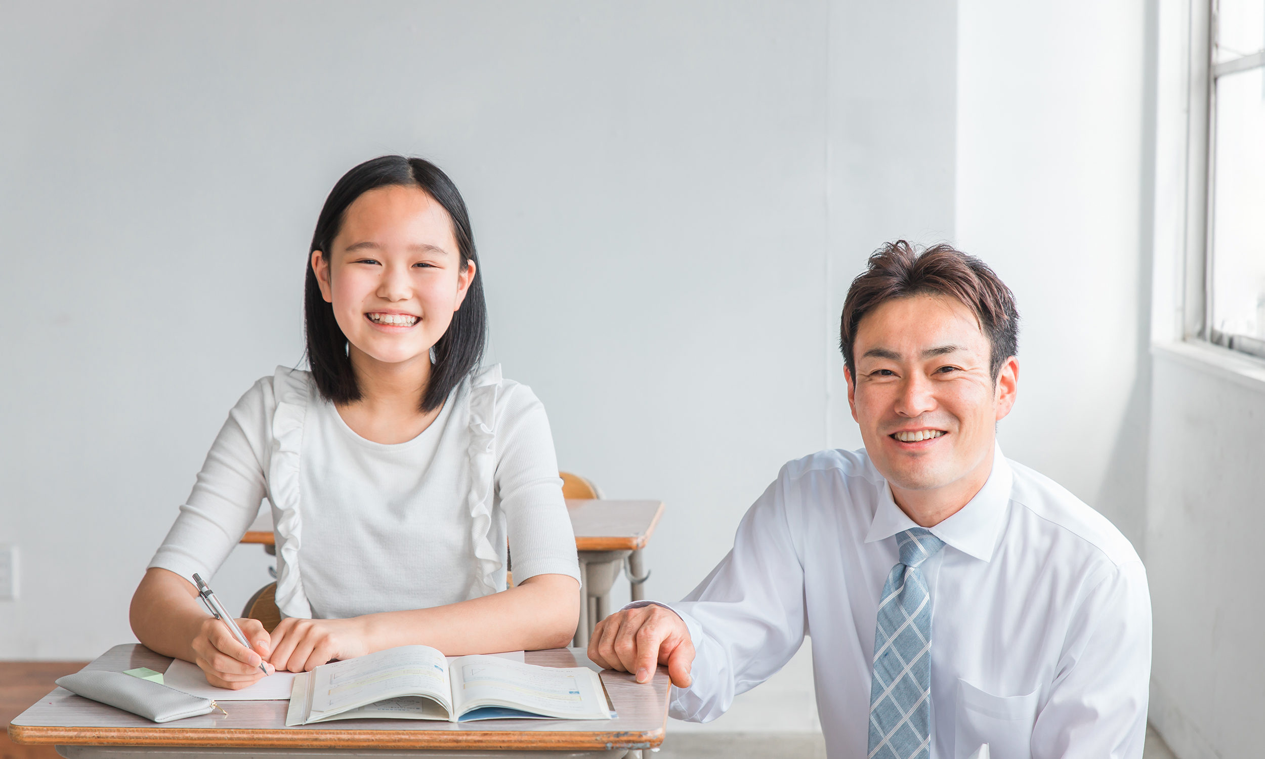 講師1人:生徒2人の個別指導。体験50分+面談10分で現状を把握し、最短2日後から開始できます。定期テスト2〜3週間前はテスト範囲に特化。費用は事前にすべて明示します。